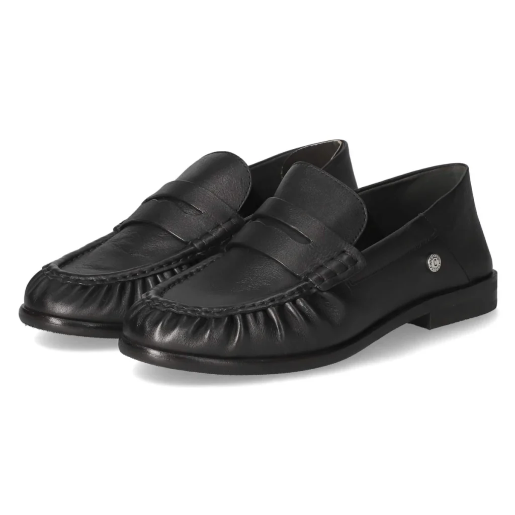 Souverän, vielseitig, komfortabel: Der Damen-Slipper PARIS AND ME PLAIN von Copenhagen Shoes überzeugt mit schwarzem Glattleder, runder Kappe und 2 cm hohem Blockabsatz. Langlebiges Echtleder und eine Lederdecksohle umschmeicheln den Fuß, das gepolsterte Fußbett liefert angenehme Abfederung im Alltag. Die flexible Laufsohle mit Grip vermittelt Stabilität, während Zierriemen, rustikal vernähte Wulstnaht und der leicht geraffte Vorfuß dem puristischen Look Struktur geben. Dank Schlupfdesign ohne Verschluss ist der Einstieg unkompliziert, die Passform entspricht der regulären Größe. Das Modell bietet hervorragende Kombinationsoptionen und fügt sich in Office- wie Weekend-Styles nahtlos ein. Modetipp: Mit schmaler Anzughose, gestreiftem Hemd und kurzem Tweed-Jäckchen entsteht ein moderner Paris-Chic.