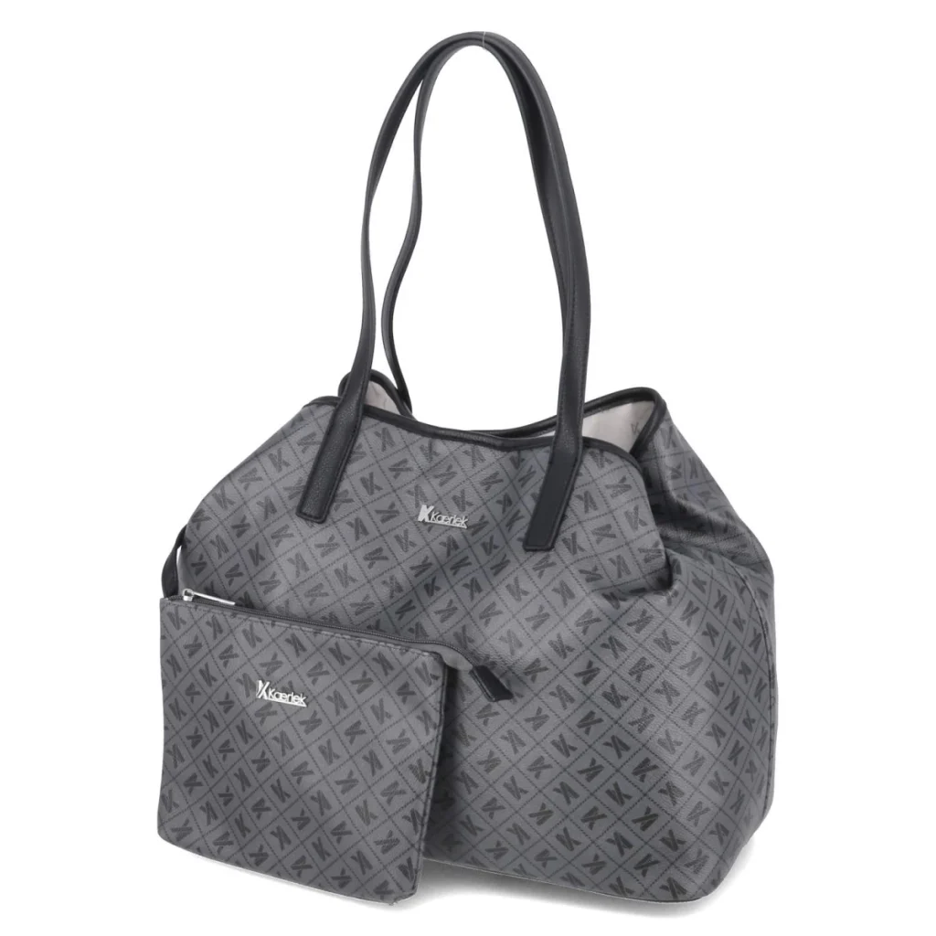 Zeitgemäß und funktional zeigt sich der bedruckte Damenshopper in Grau als zuverlässiger Begleiter. Mit ca. 30 x 40 x 20 cm und einem Volumen von etwa 20 Litern bietet er ausreichend Platz für Organizer, Tablet und Kosmetik-Etui. Der verstärkte Boden sorgt für einen souveränen Stand, zwei feste Henkel von ca. 50 cm Länge erlauben verschiedene Trageoptionen. Das Hauptfach schließt per Magnetverschluss, das Innenleben punktet mit zwei Steckfächern, zwei Stiftplätzen und einem Reißverschlussfach. Eine Einsatztasche am kurzen Riemen hält Kleinigkeiten separat. Das Markenmuster setzt einen stilvollen Akzent, ohne aufdringlich zu wirken, und unterstreicht die klare Form. Modetipp: Mit dunkelblauer Jeans, weißer Bluse und Trenchcoat entsteht ein smarter City-Look, der die Graunuance edel aufgreift.