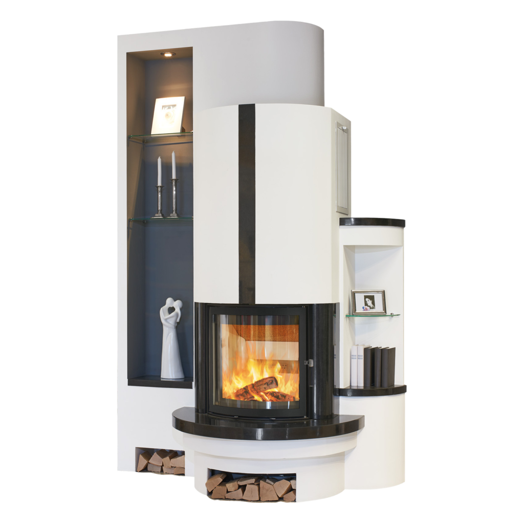 Unser Marmorkamin 1/150.0 faellt durch seine gerundeten Formen mit zwei integrierten Regalen und edle Elemente aus poliertem Nero-Assoluto-Marmor ins Auge. Das sanfte Flackern der Flammen, das leise Knistern des Holzes und die Waerme, die sich im Raum ausbreitet – sobald Sie das Feuer in dem Kamin entfachen, entfaltet sich eine Atmosphaere von Geborgenheit und Entspannung.