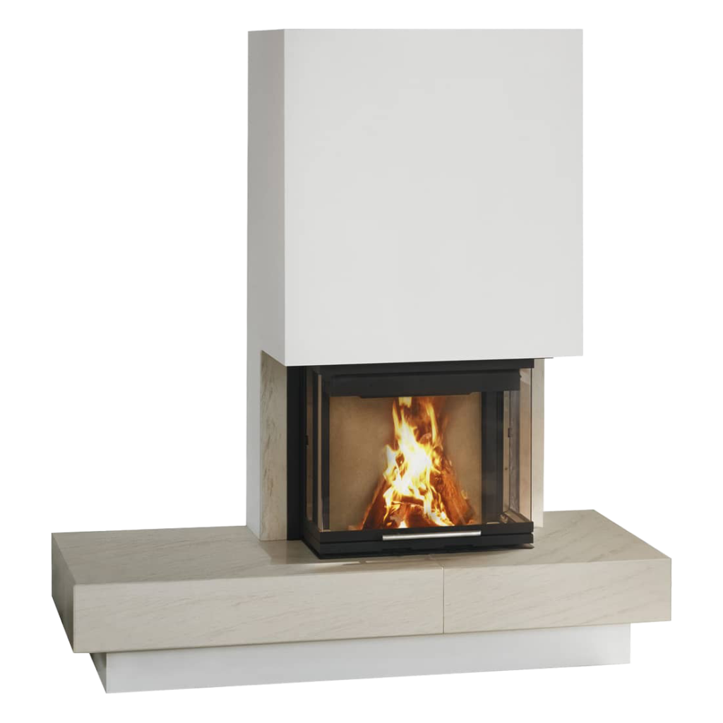 Der Heizeinsatz gibt mit seiner dreiseitigen Panoramascheibe einen grosszaegigen Blick auf die lodernden Flammen im Marmorkamin 1/190.0 frei, das so in vollen Zaegen geniessen können. Das leise Knistern des Feuers, das sanfte Flackern der Flammen und die wohlige Waerme schaffen ein Gefaehl von Geborgenheit und Entspannung, wie es nur eine echtes Kaminfeuer kann.