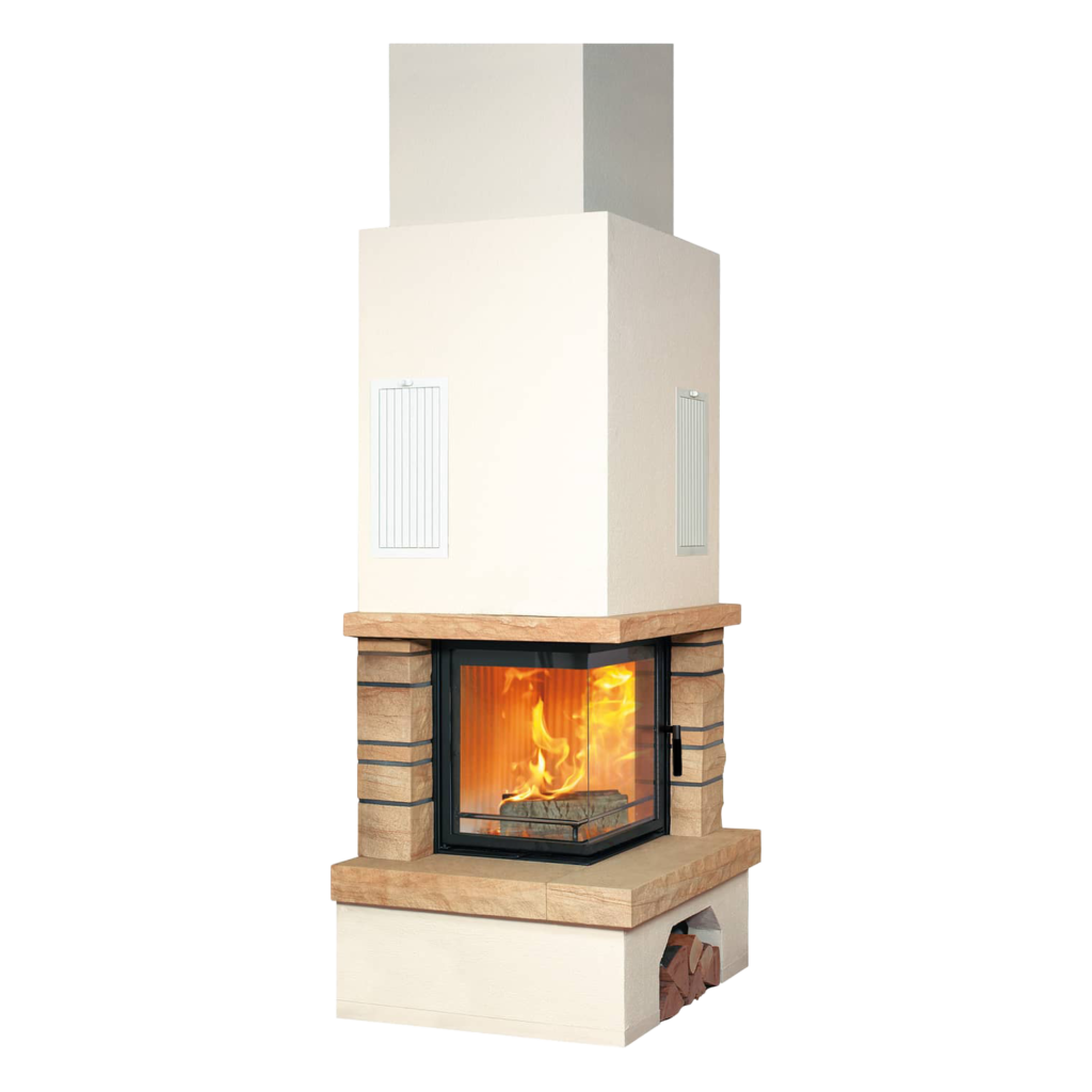 Mit seiner Mischung aus geradlinigem Design, hochwertigem Sandstein und moderner Technik verleiht unser Natursteinkamin 4/3.3 dem Aufstellraum eine besonders einladende, gemaetliche Note. Diese verstaerkt sich selbstverstaendlich noch, wenn das Kaminfeuer den Raum mit dem sanften Flackern der Flammen, dem leisen Knistern des brennenden Holzes und angenehmer Waerme erfaellt. Das Flammenspiel können Sie durch die zweiseitige Sichtscheibe geniessen.
