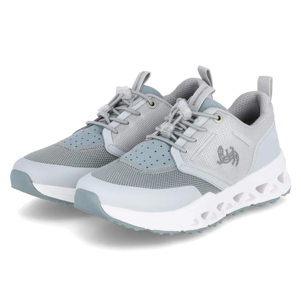 Der graue Damen-Low-Sneaker von Salamander setzt auf dezente Eleganz und smarte Funktion. Das Mix-Obermaterial aus Textil & Synthetik ist pflegeleicht und formstabil, die runde Spitze hält den Look alltagstauglich. Eine sportliche Laufsohle mit Luftpolstern dämpft zuverlässig, die flexible Sohle mit griffigem Profil stabilisiert auf unterschiedlichen Untergründen. Schnellverschluss und Anziehlasche ermöglichen einfaches Handling, der gepolsterte Einstieg unterstützt ein angenehmes Gefühl rund um den Knöchel. Das komfortable, herausnehmbare Wechselfußbett und die Decksohle aus Leder bieten Komfort nach Maß. Verstärkungen an Ferse und Zehen bringen Haltbarkeit, das relaxt leichte Design überzeugt im Dauereinsatz. Fällt normal aus. Modetipp: Mit Midi-Rock in Satinoptik und Strick-Top entsteht ein spannender Stilbruch.